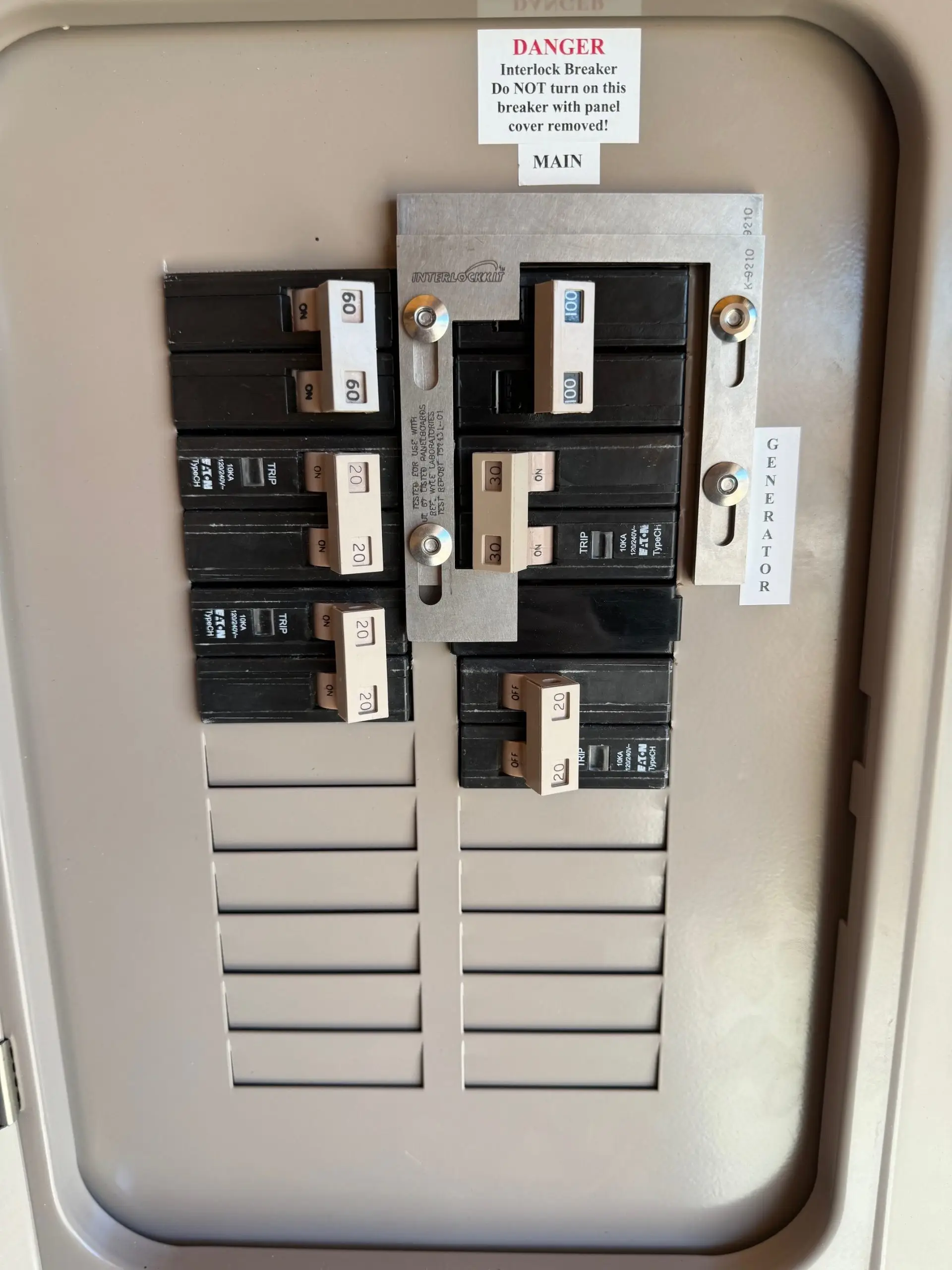 An interlock kit gives you direct control over which circuits your generator powers. If your generator can handle the load, you can even power all your breakers, making it easy to maintain full functionality during a power outage with just a few switch flips.