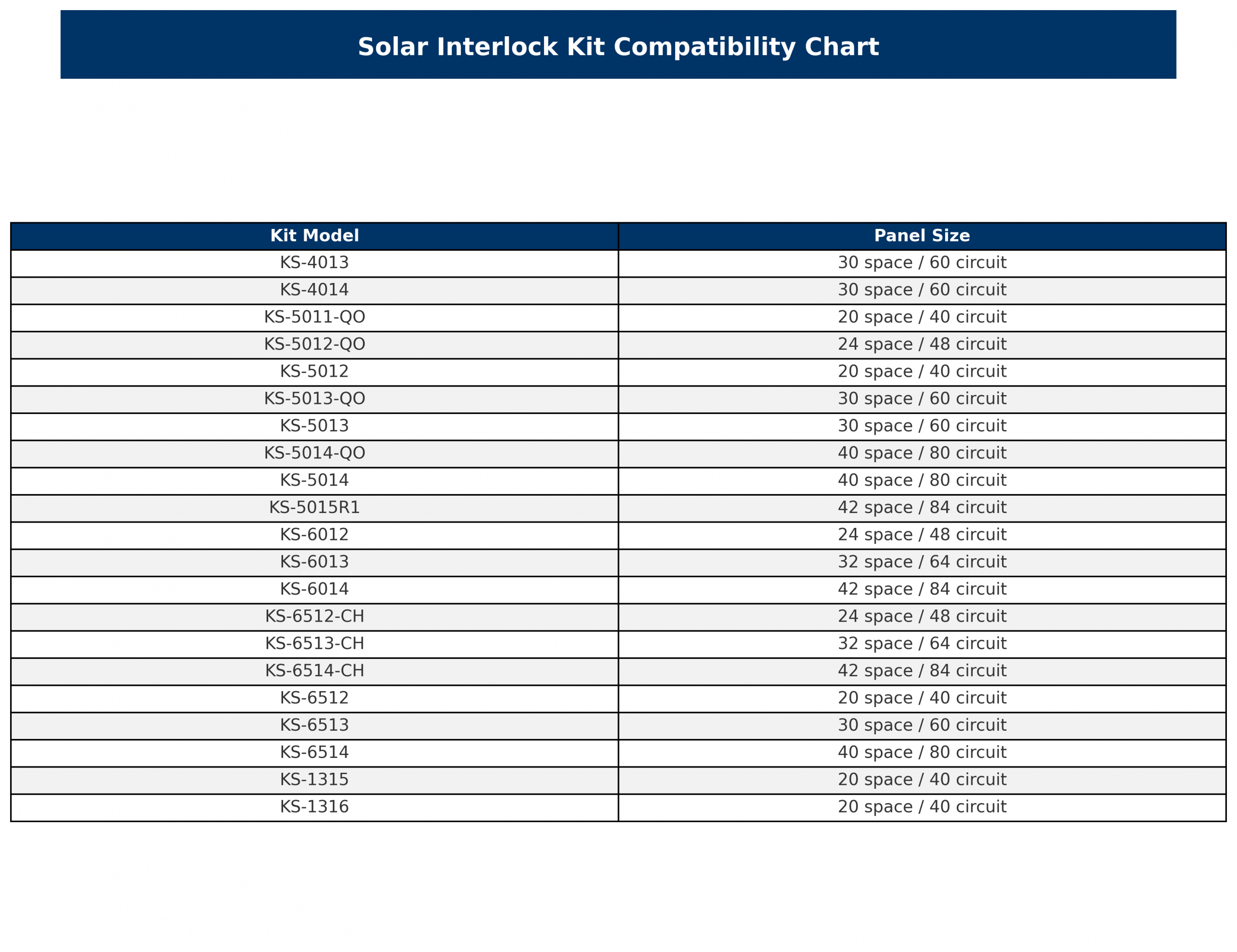 The key to choosing the correct solar interlock kit comes down to one important factor: panel spacing. Every electrical panel is a little different. The number of spaces and circuits, the positioning of the main breaker, and the physical distance between breakers all affect which interlock kit will fit properly. If the spacing is off, even slightly, the interlock may not align correctly or may not function safely. That’s why our kits are named and classified based on the number of breaker spaces and the panel layout they are designed for.