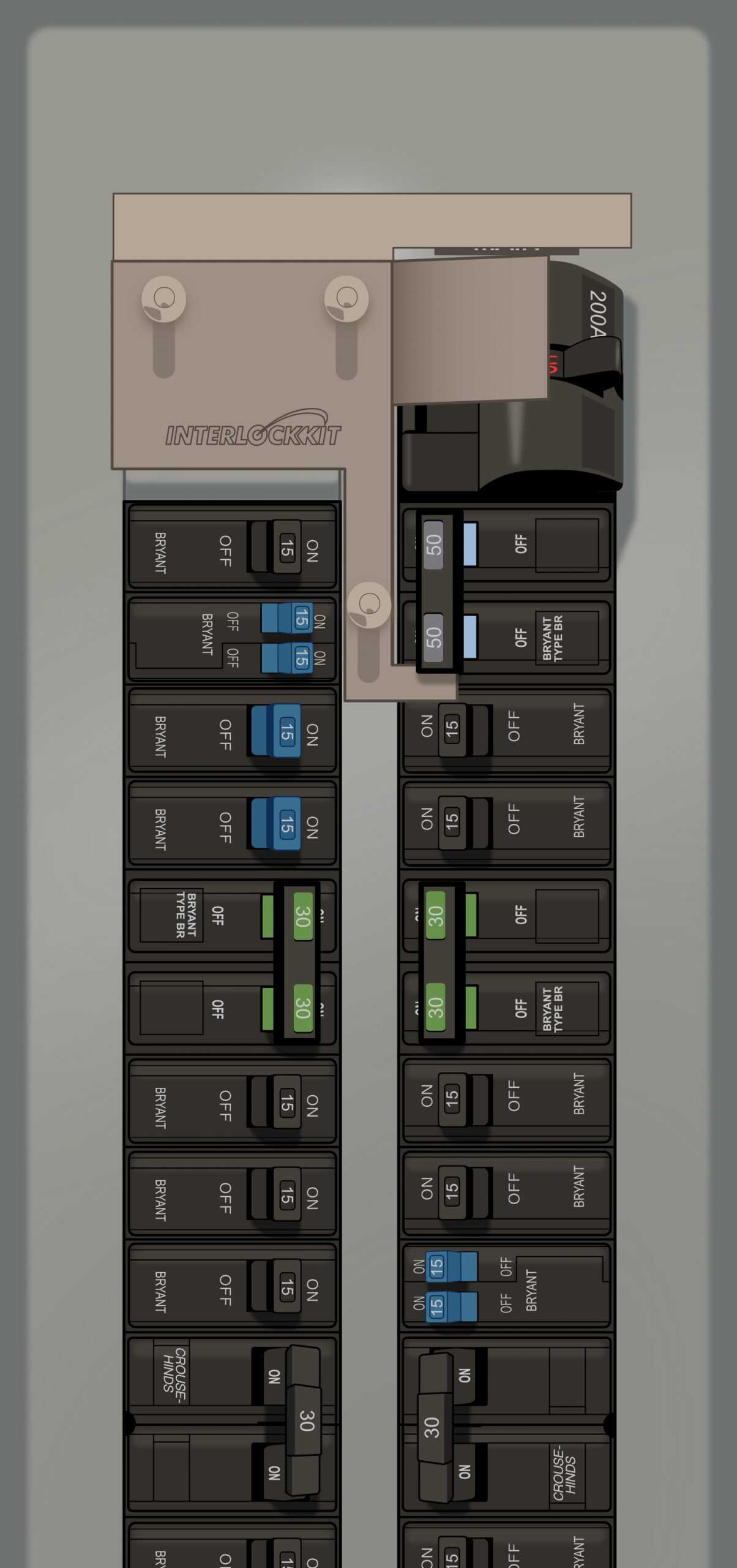 This Interlock Kit performs like a manual transfer switch for Crouse-Hinds / Murray electrical panels with the following features:
