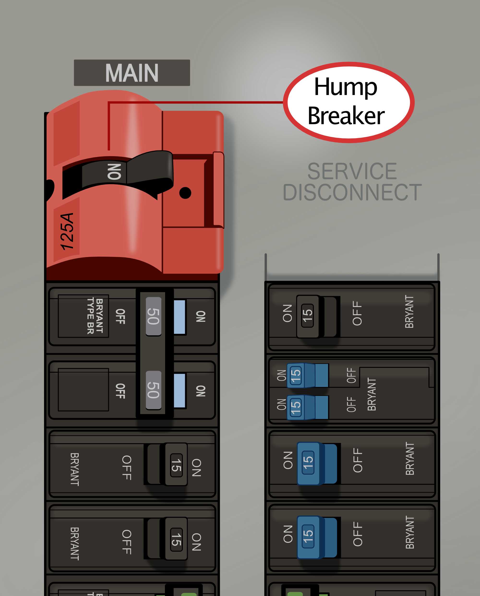 - Main breaker toggle action: Horizontal (right-left) throw direction ON & OFF