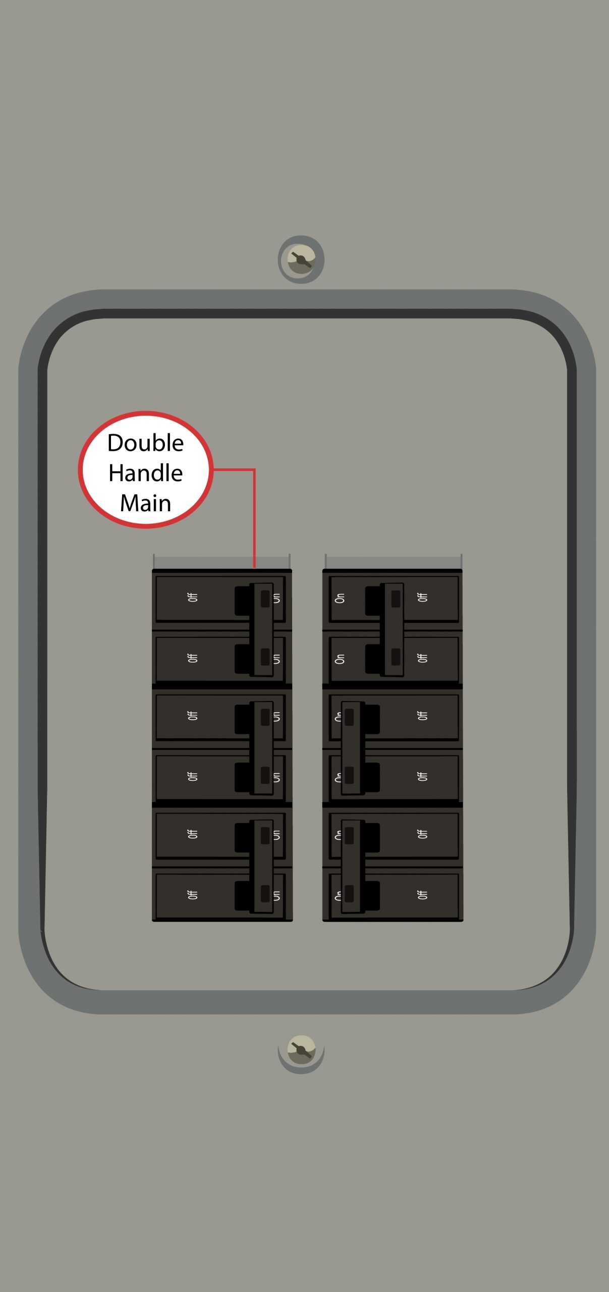 • Main breaker toggle action: horizontal (left-right) throw direction ON & OFF