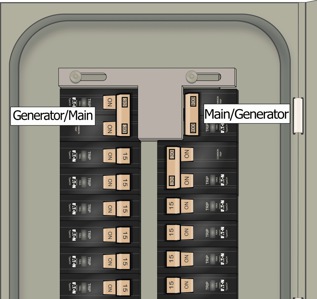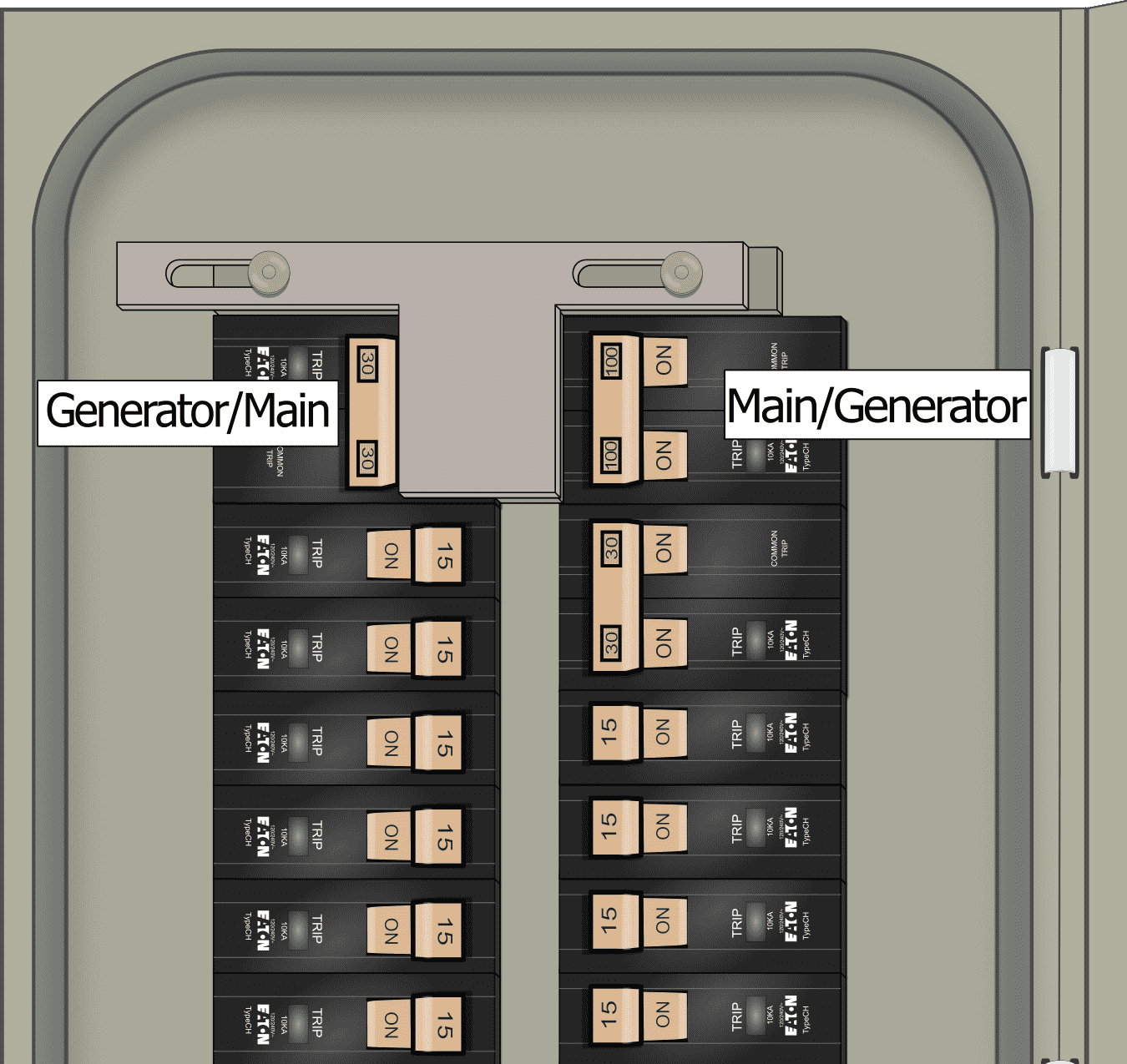 - Install a two pole generator breaker at the top of the opposite column from the main breaker