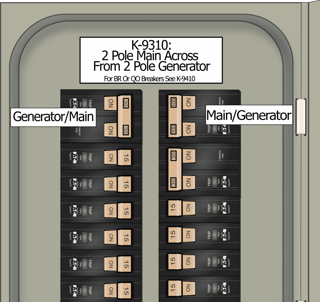 - Install a two pole generator breaker at the top of the opposite column from the main breaker