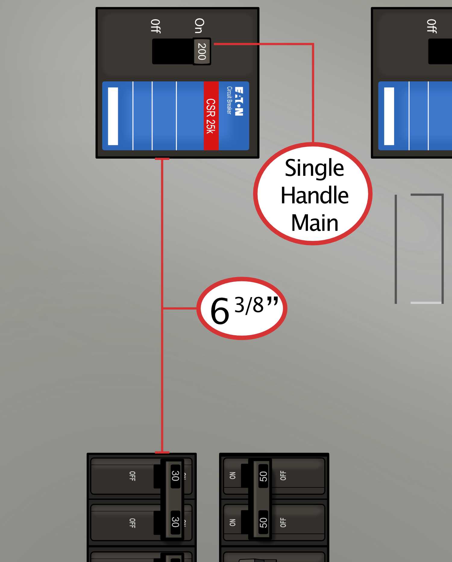 - Gap between the main breaker and columns below, is: 6 3/8 "