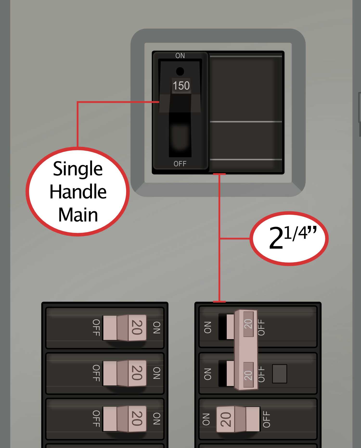 - Gap between main breaker and breaker columns, is: 2 1/4"
