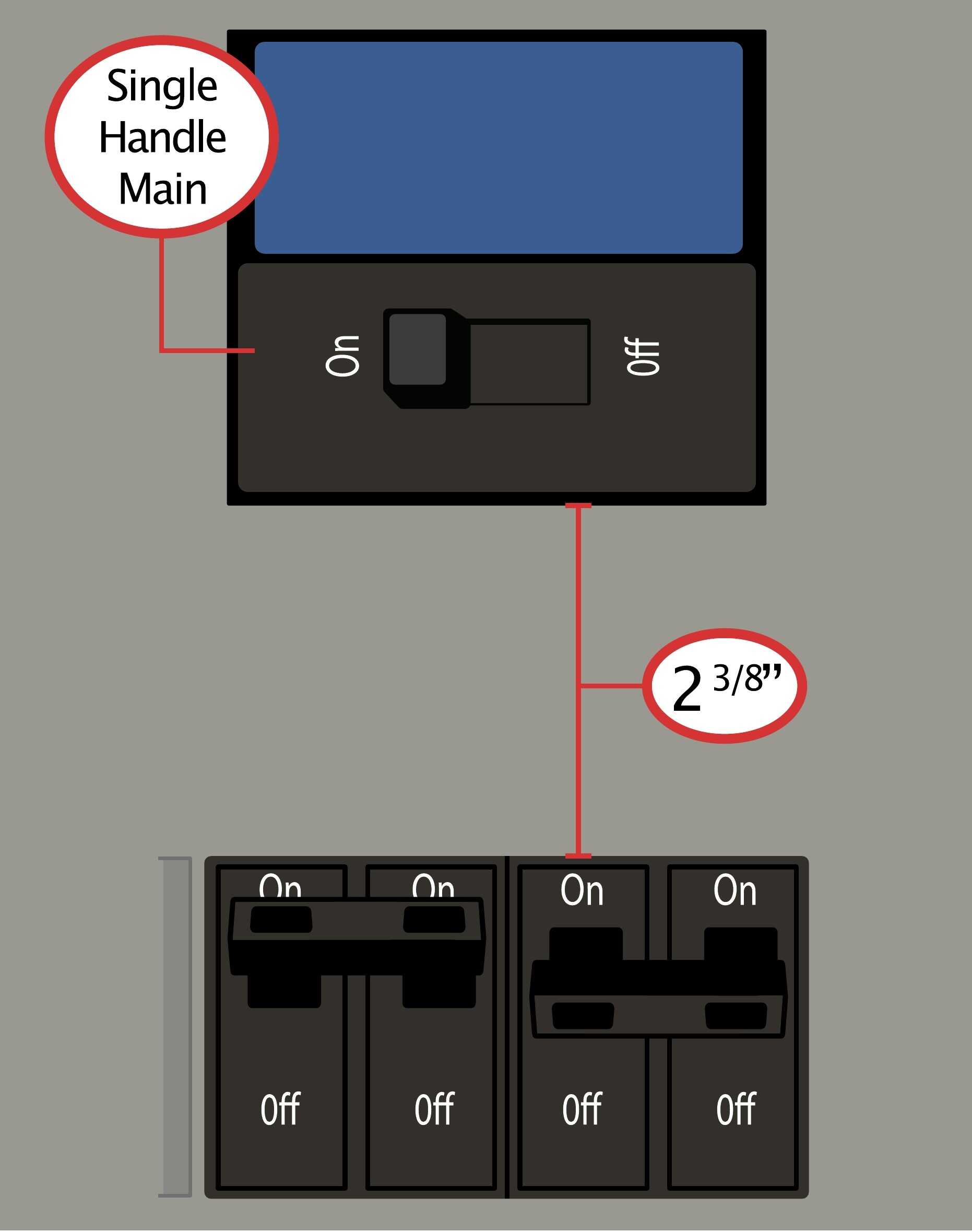 - Main breaker toggle action: Horizontal (left-right) throw direction ON & OFF