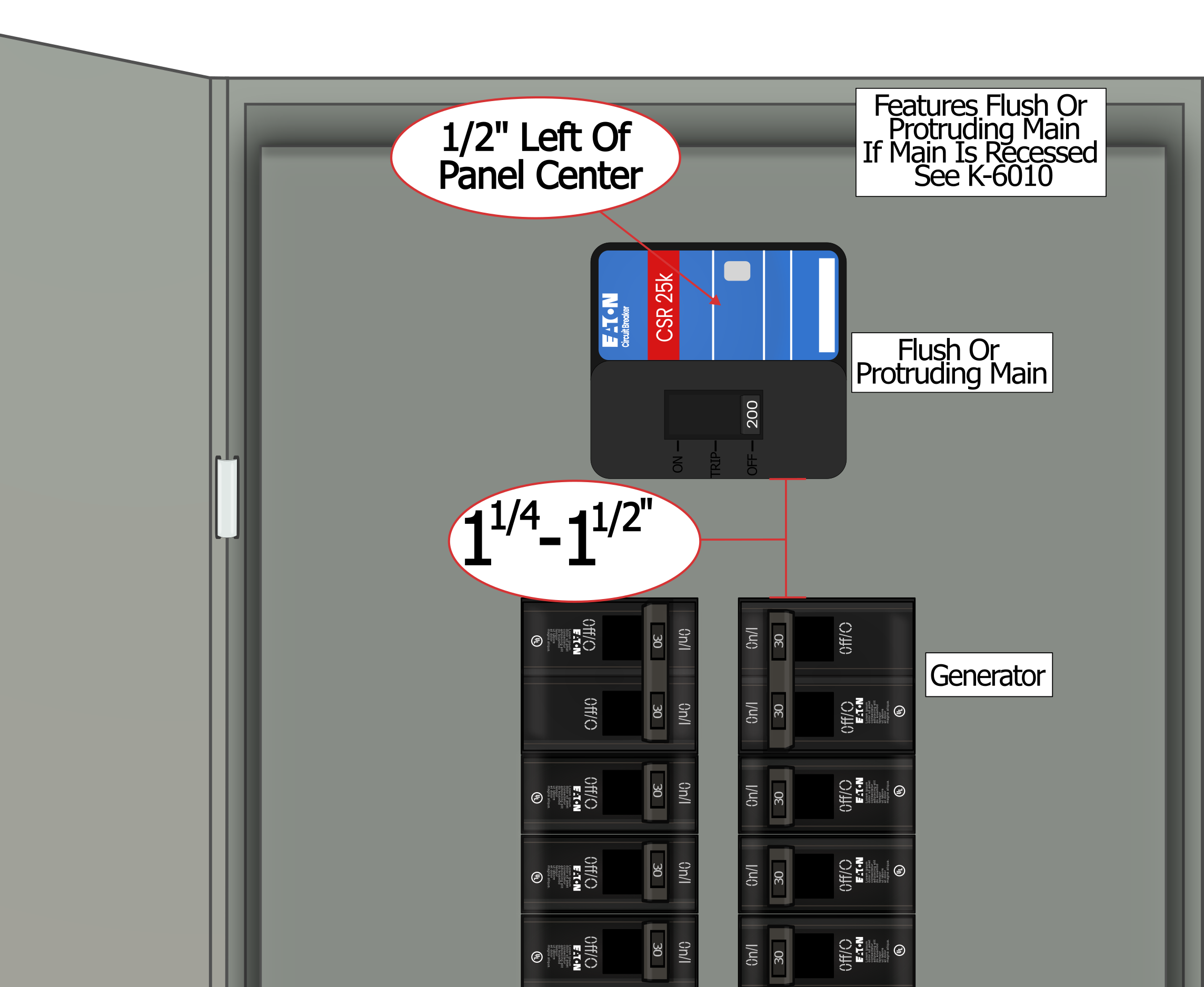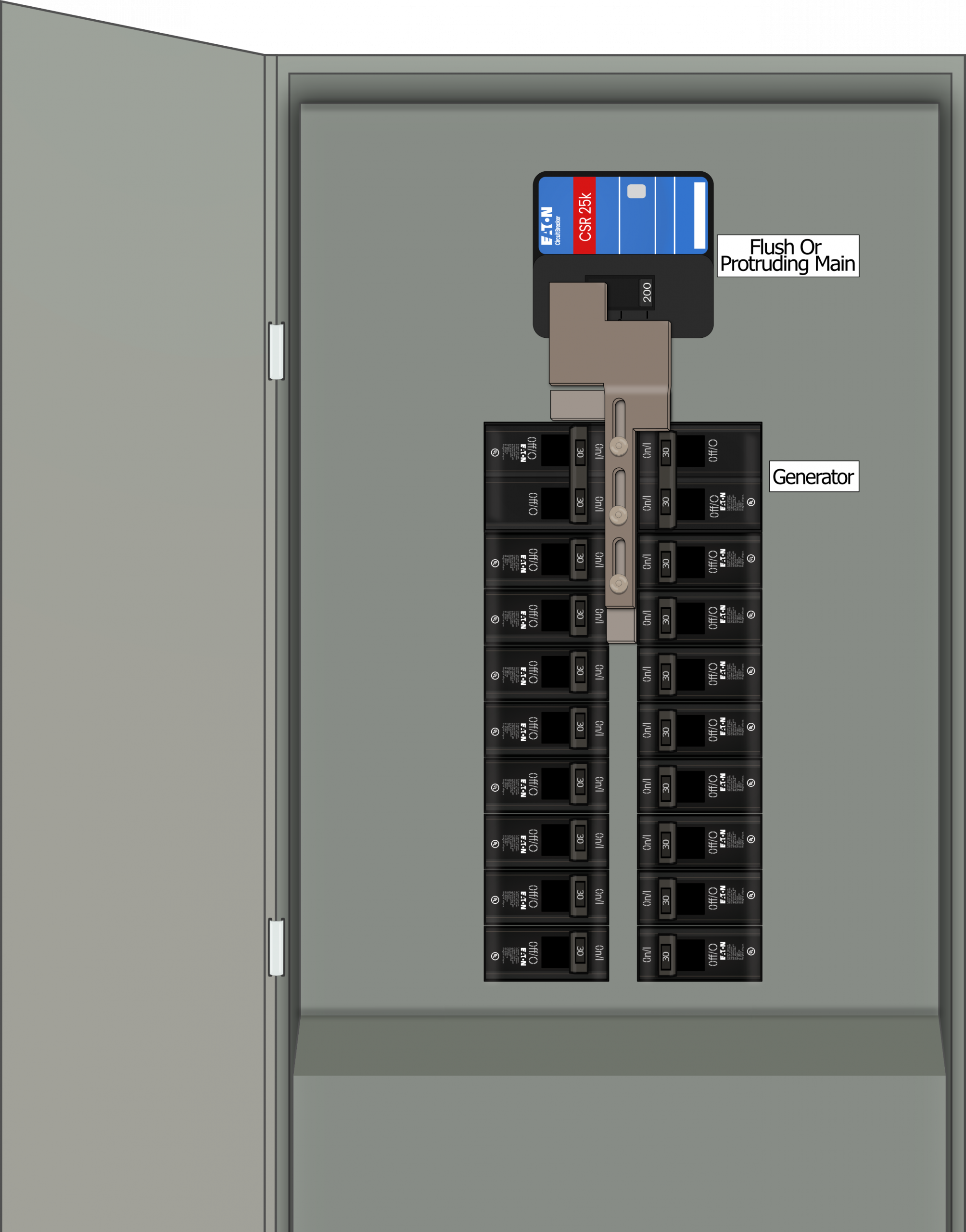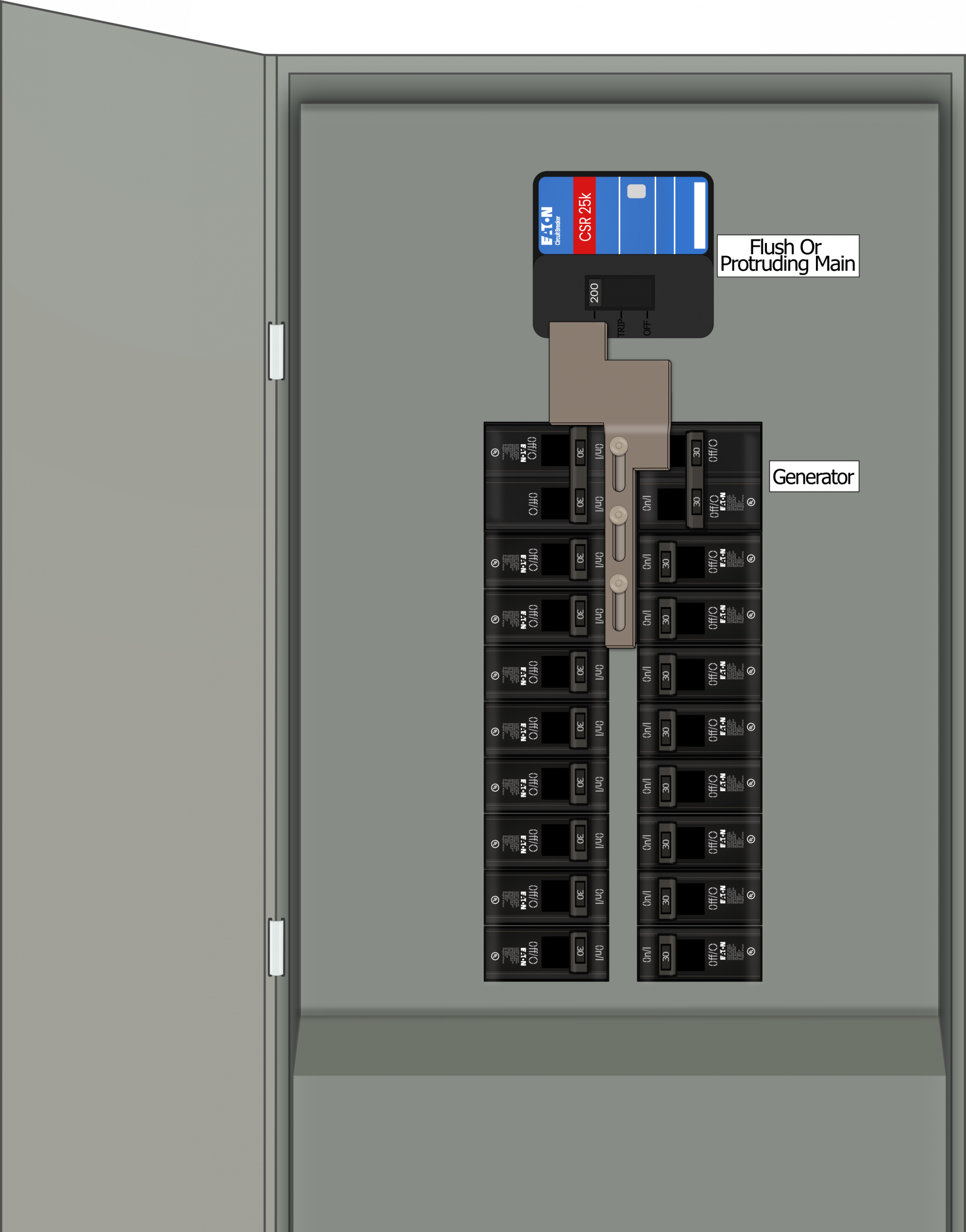 This Kit performs like a manual transfer switch for EATON / Cutler Hammer electrical panels with the following features: