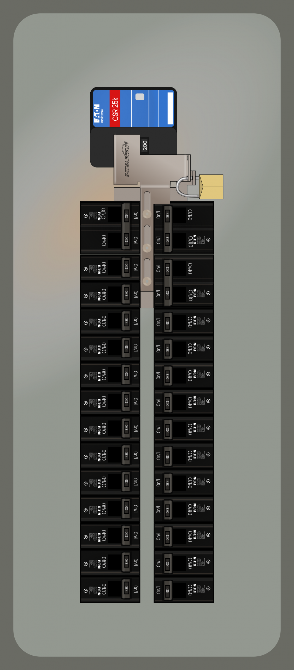 - Main breaker toggle action: horizontal (left-right) throw direction ON & OFF