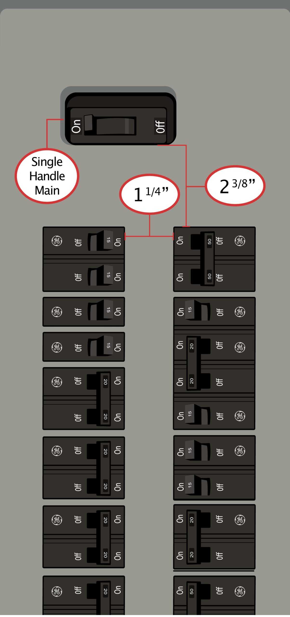 - Gap between the main breaker and columns below is: 2 3/8" approximately