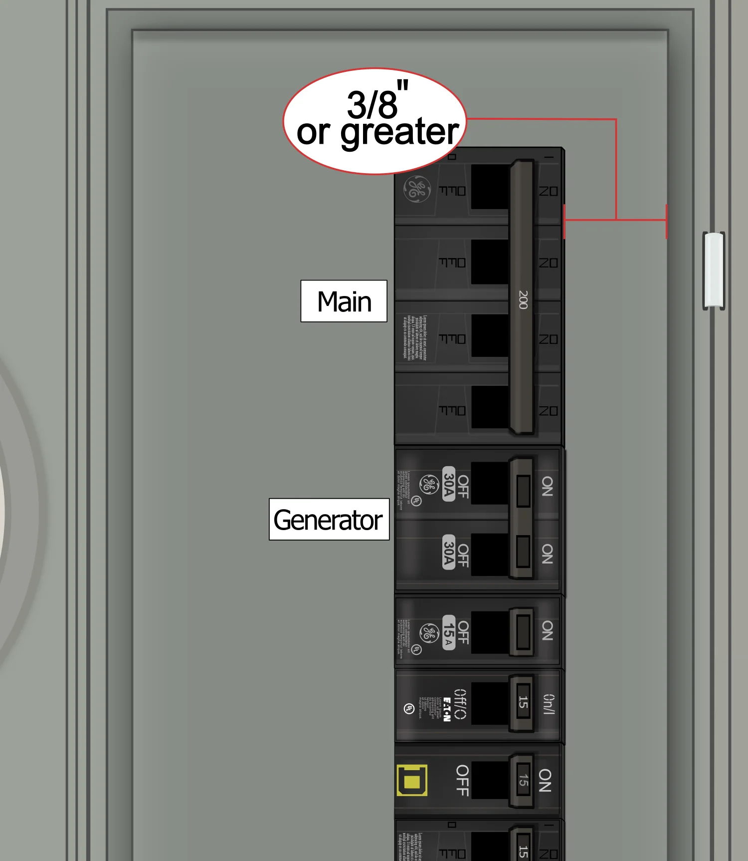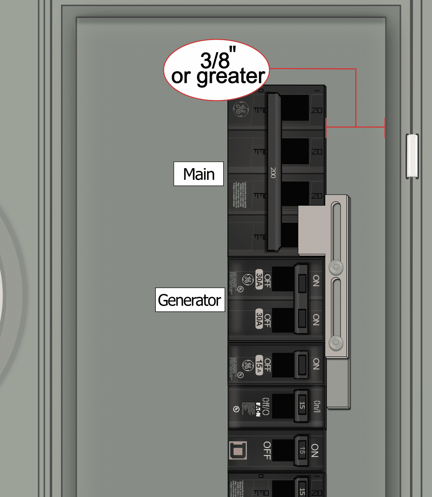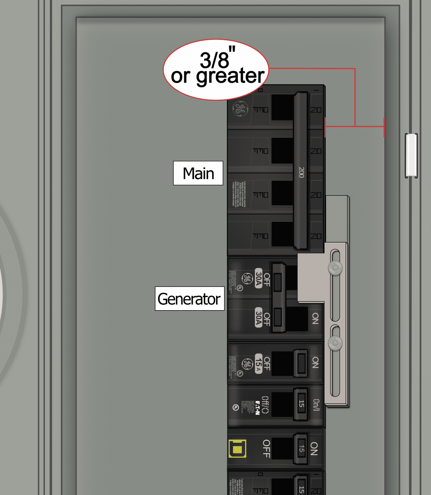- Install a generator breaker directly above/below the main breaker