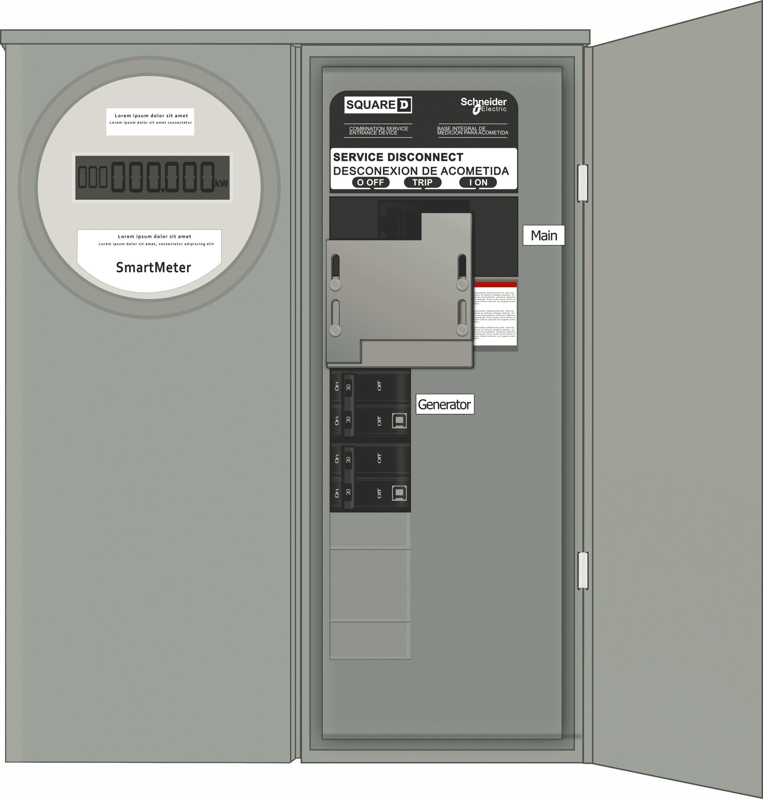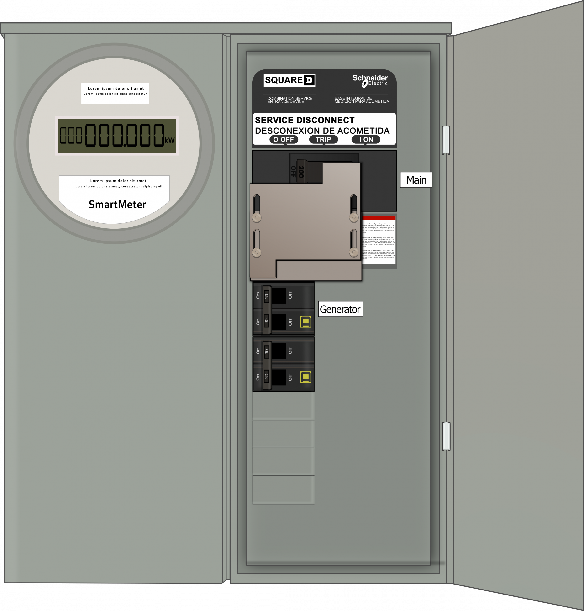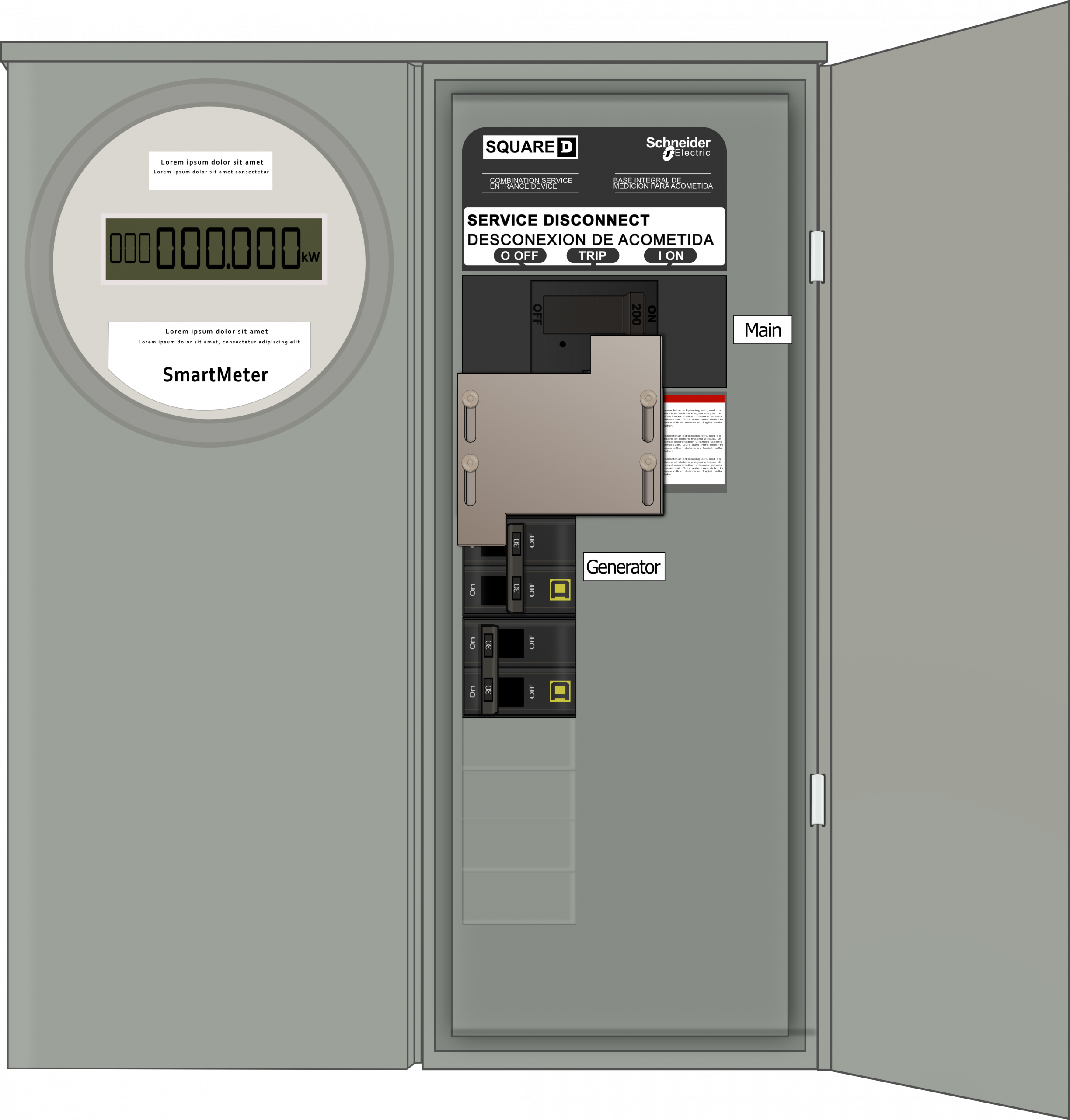 - Main breaker toggle action: horizontal (left-right) throw direction ON & OFF