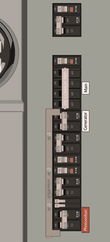 - Install a solar breaker in the bottom right corner of the branch circuit columns
