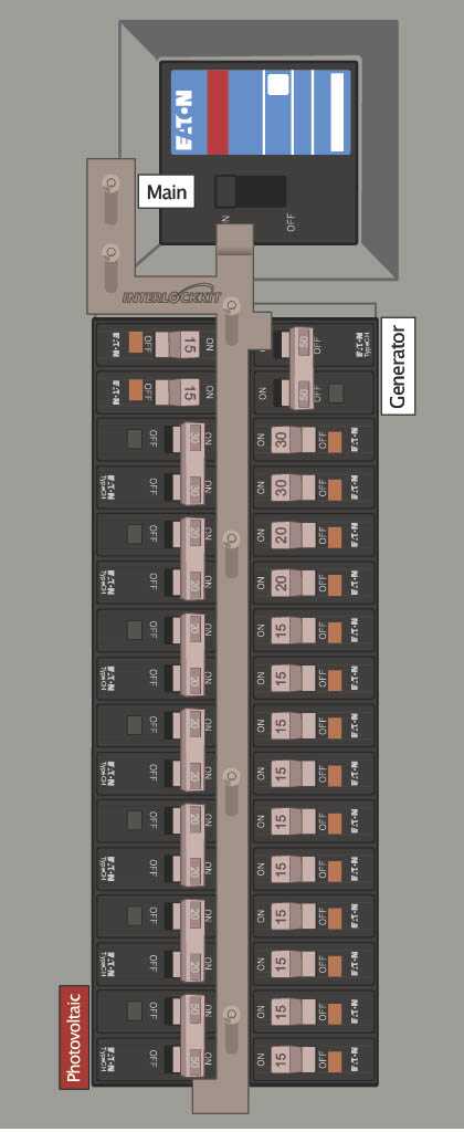 - Install a solar breaker in the bottom left corner of the branch circuit columns