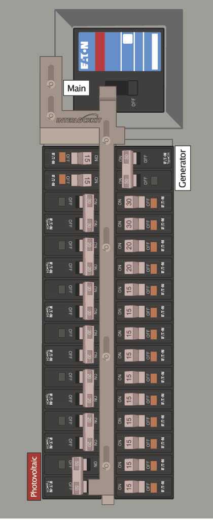 - Install a generator breaker at the top of the right column: spaces 2 & 4
