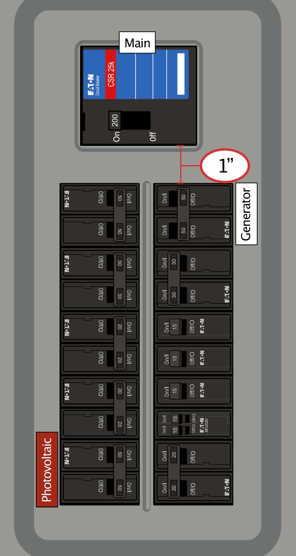 - Gap between main breaker and columns below: 1 1/4 - 1 1/2"