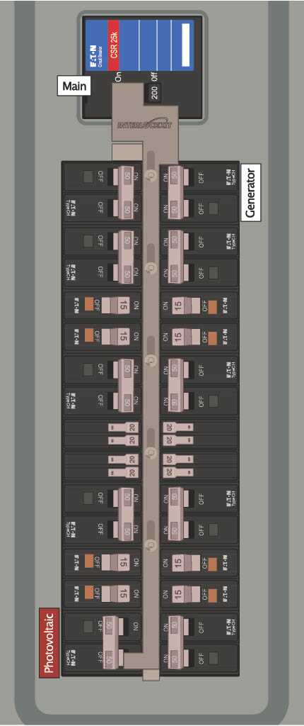 - Install a solar breaker in the bottom left corner of the branch circuit columns