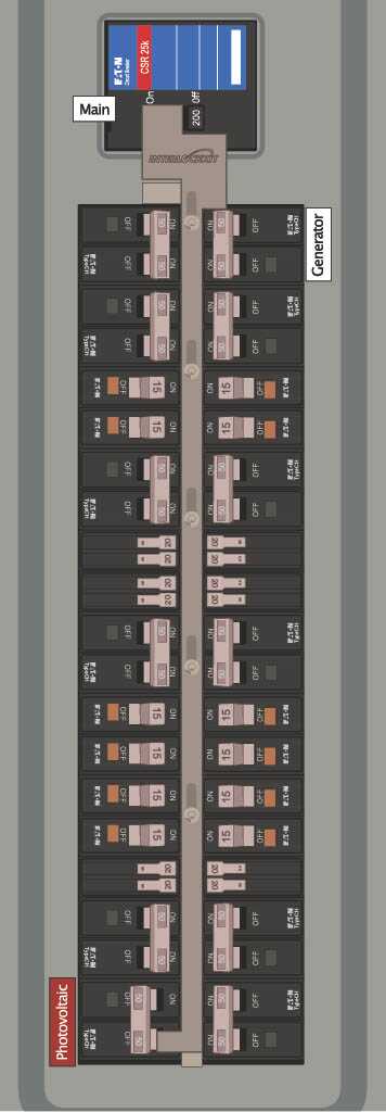 - Main breaker is centered over both breaker columns