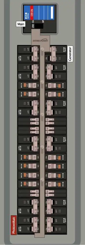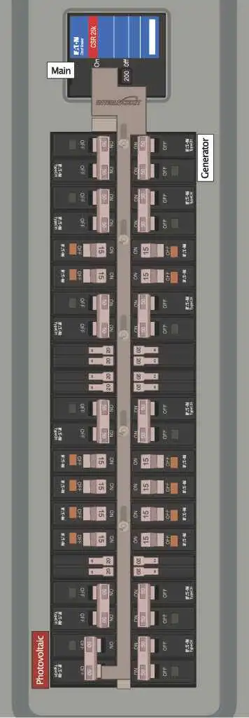 - Install a solar breaker in the bottom left corner of the branch circuit columns