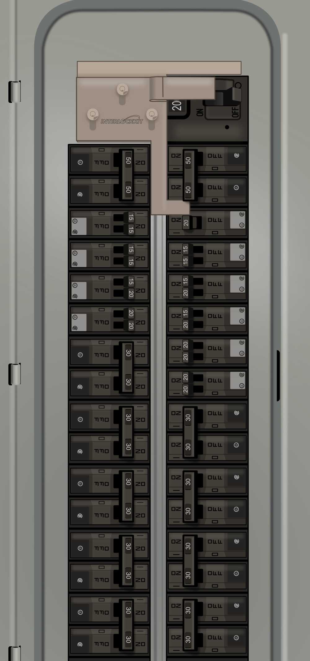This Kit performs like a manual transfer switch for Siemens / ITE / Murray electrical panels with the following features: