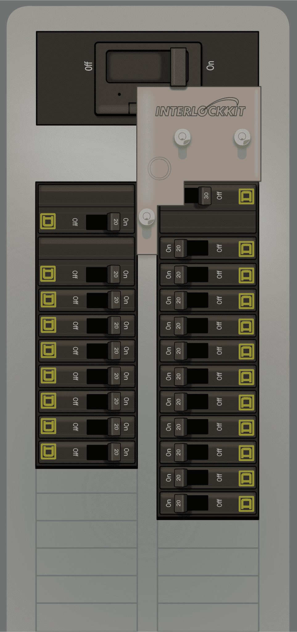 This Interlock Kit mounts to Square D electrical panels with the following features: