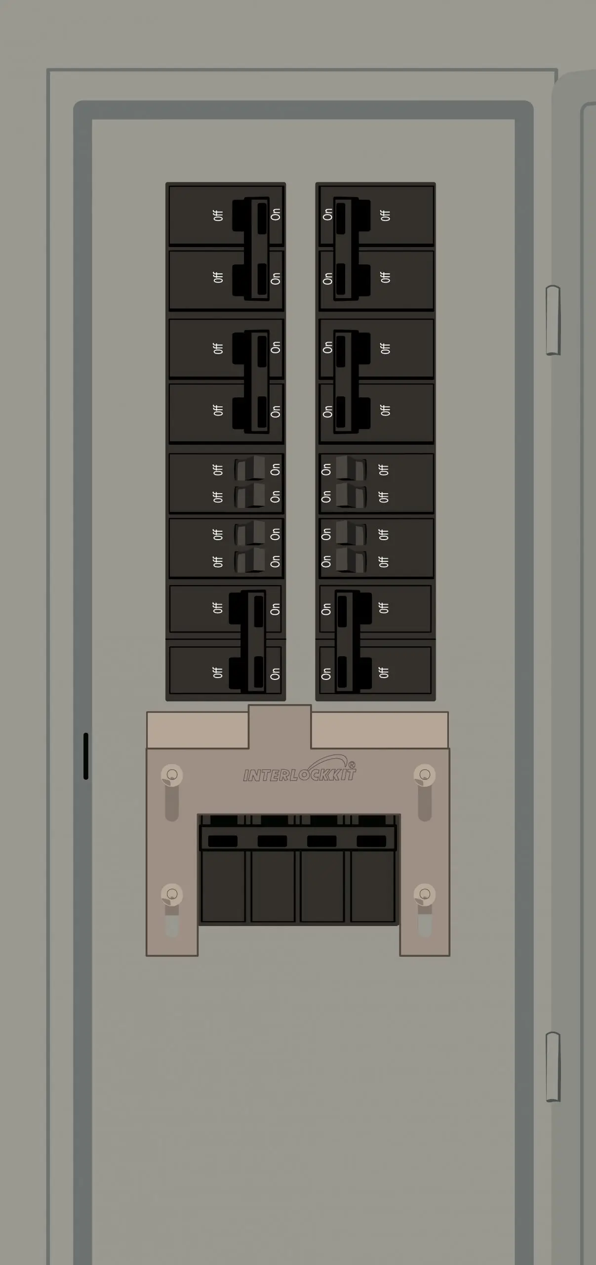This Interlock Kit mounts to Westinghouse, Thomas & Betts, and Challenger electrical panels with the following features: